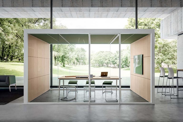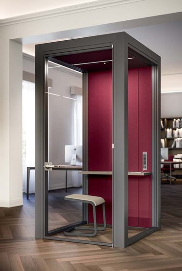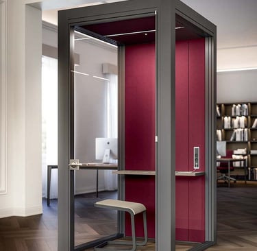 Per chi cerca ambienti più riservati, proponiamo cabine insonorizzate ideali per riunioni, call di lavoro o momenti di concentrazione, riducendo il rumore e migliorando la qualità dell'acustica.